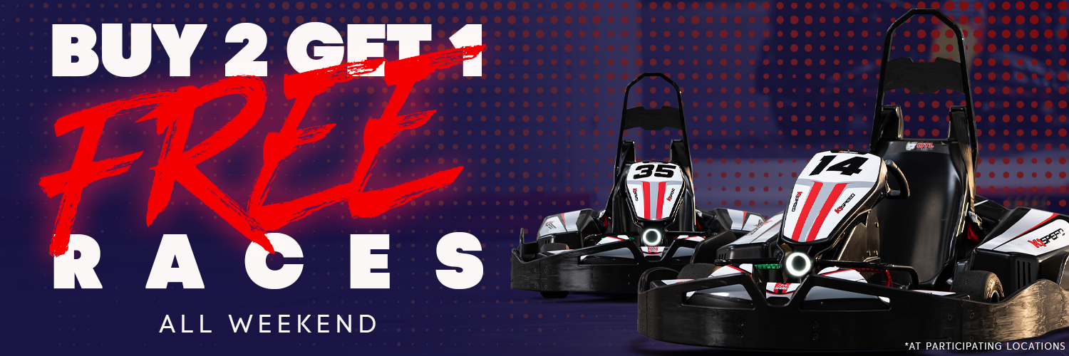 If you want a cheaper time to go racing at K1 Speed, then make sure you come in this weekend for our Buy 2 Get 1 Free promo!